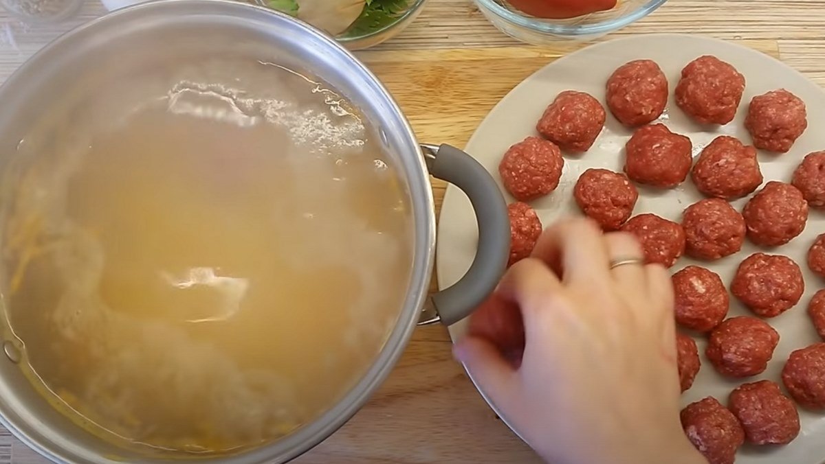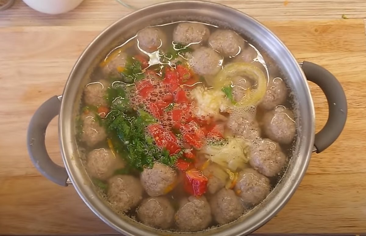 7. Gdy woda w garnku, zacznie ponownie wrzeć, dodawaj stopniowo klopsiki. Całość, gotuj na wolnym ogniu przez 15–20 minut.