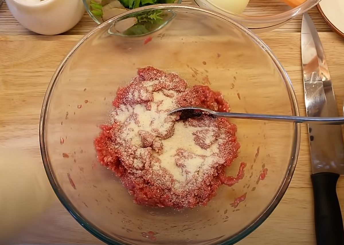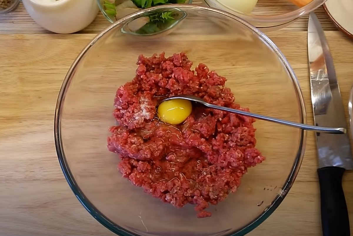 1. Mięso mielone, dopraw do smaku solą i pieprzem, dodaj jajko i dobrze wymieszaj.