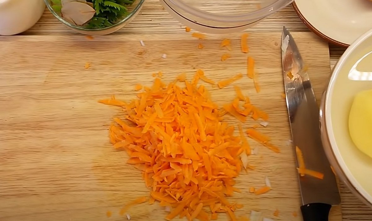 5. Następnie, dodaj obraną i startą na tarce o grubych oczkach marchewkę.