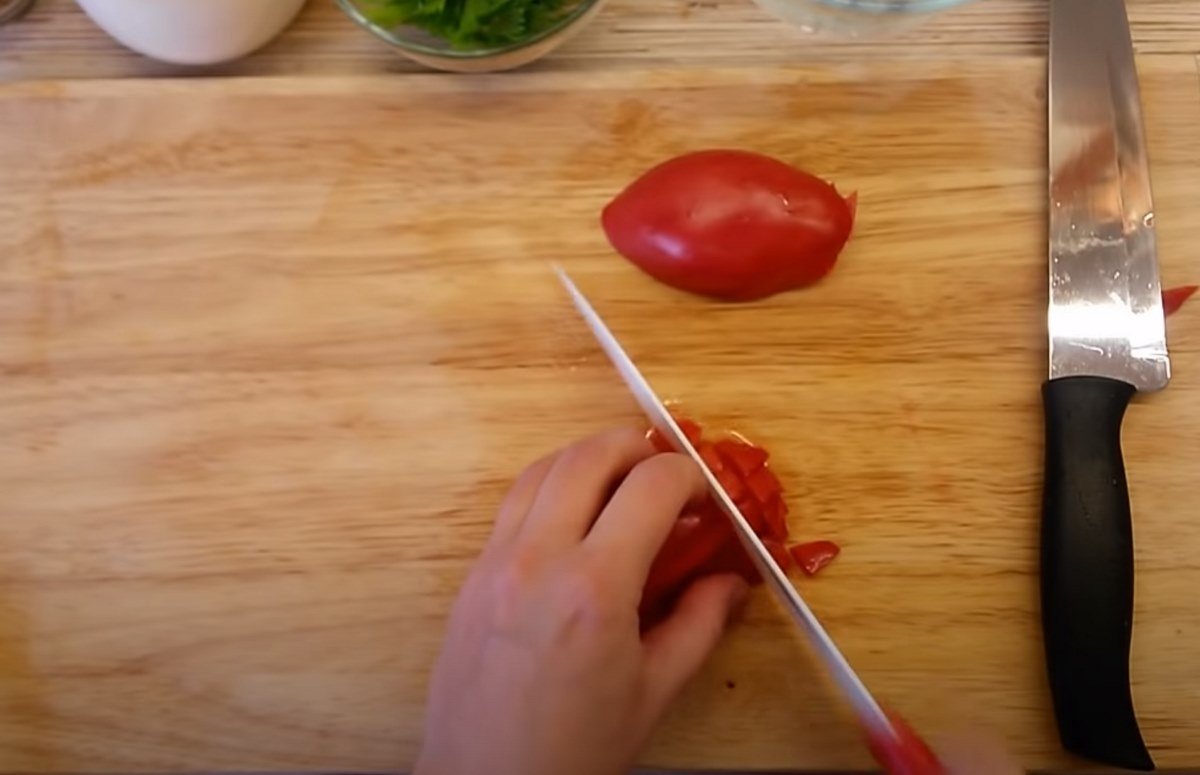 8. Teraz, dodaj pokrojonego w drobną kostkę pomidora, który doda zupie lekko kwaskowy smak.