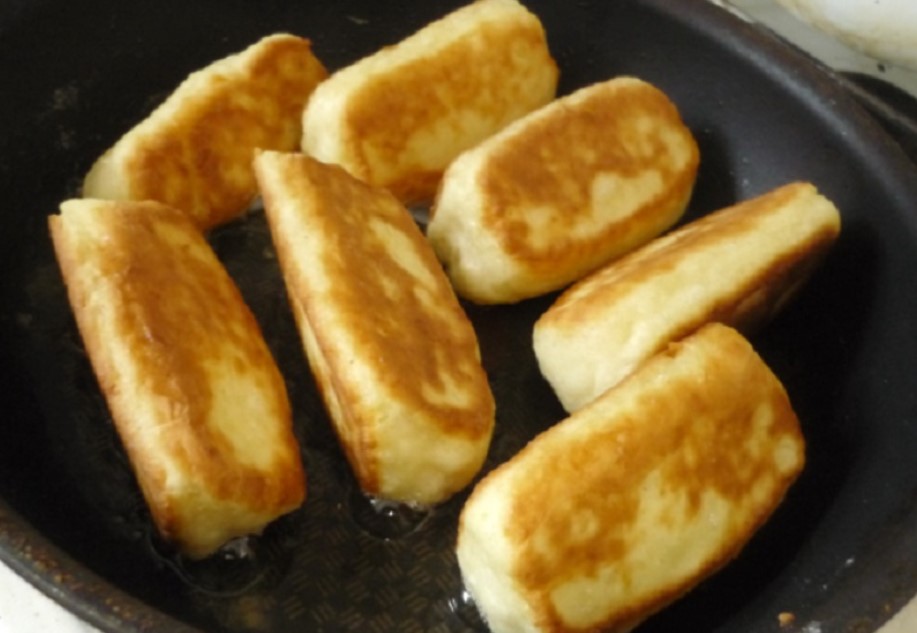4. Gotowe batoniki, smaż na rozgrzanej patelni z olejem na złoty kolor z każdej strony. Gotowe!