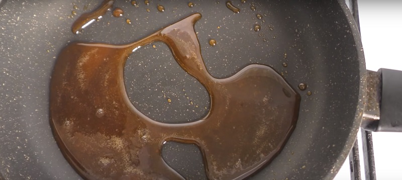 4. Do małego garnka z grubym dnem lub na patelnię, wsyp 4 łyżki cukru i podgrzewaj na średnim ogniu przez około 4 minuty. Kiedy cukier zamieni się w bursztynowy karmel, wymieszaj i zdejmij z ognia.