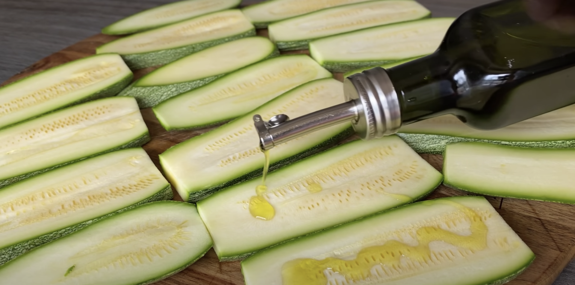 Do nacierania powierzchni cukinii należy używać oliwy z oliwek z obu stron.
