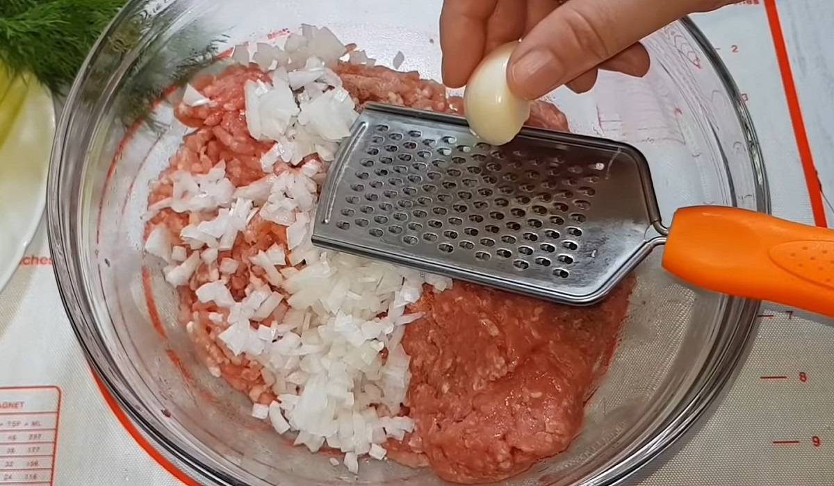 1. Mięso mielone, wymieszaj z pokrojoną w kosteczkę cebulą, przeciśniętym przez praskę czosnkiem, dopraw do smaku solą i pieprzem.