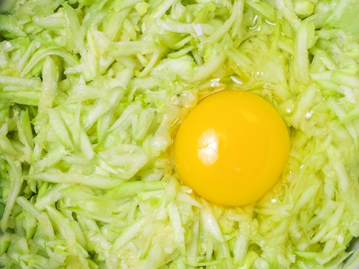 2.Umyj, następnie dokładnie obierz cukinię. Zetrzyj ją na tarce, następnie odstaw na kilka minut, a później wyciśnij z niej cały sok.