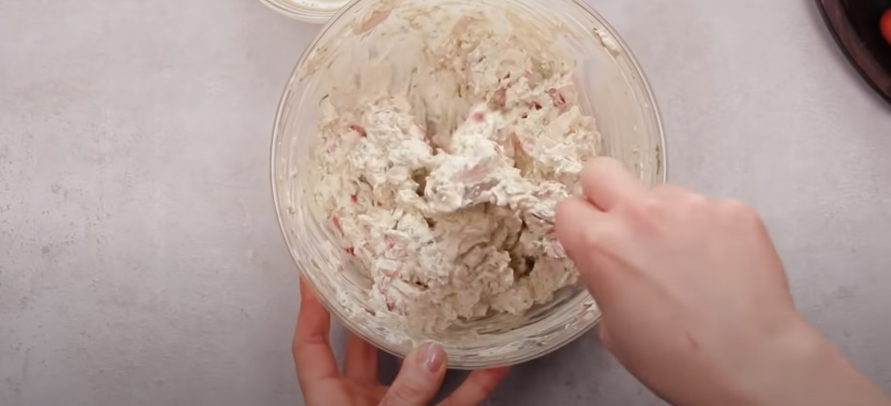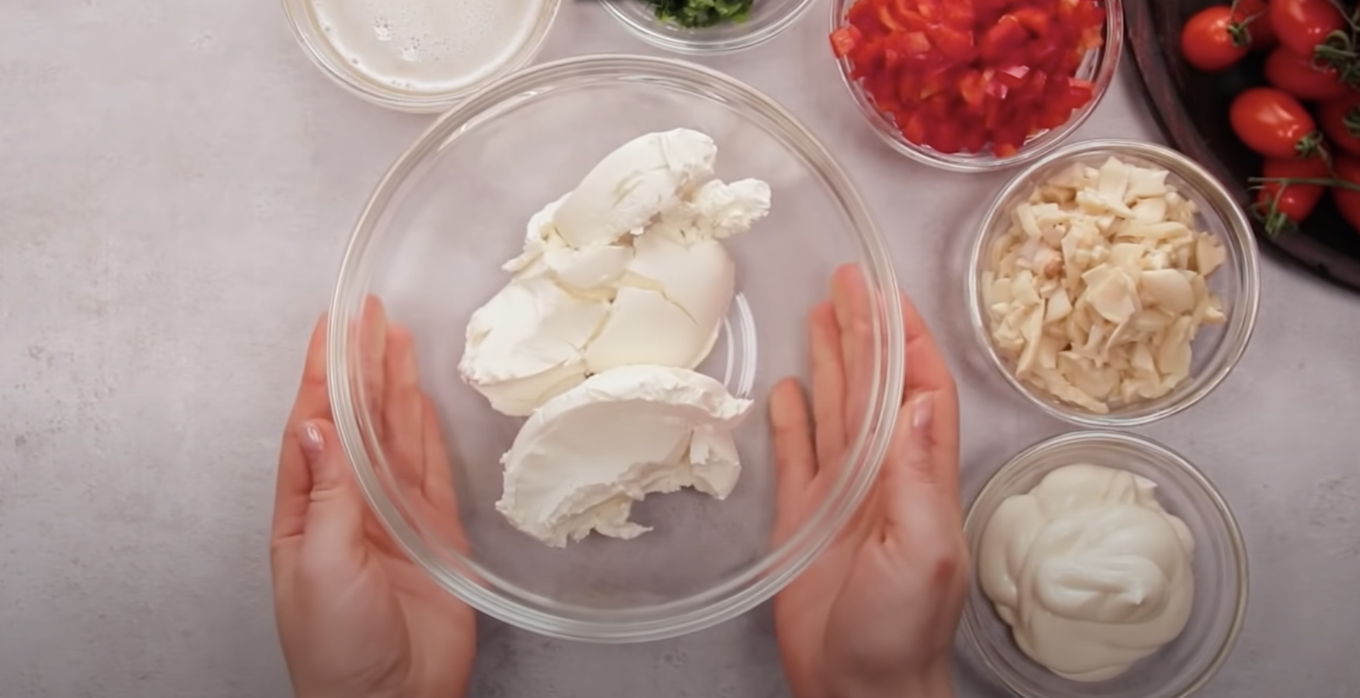 3. W misce, wymieszaj majonez z serkiem kanapkowym.