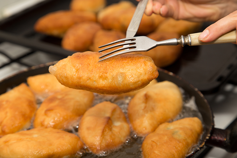 8. Smaż bułeczki w rozgrzanym, głębokim oleju z dwóch stron na złoty kolor.