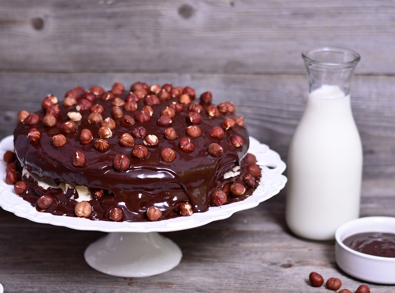 Tymczasem możesz opcjonalnie zrobić polewę ze śmietany i skondensowanego gotowanego mleka, ubijając składniki mikserem lub rozpuścić mleczną czekoladę w kąpieli wodnej. Polewaj schłodzone ciasto od góry i po bokach.