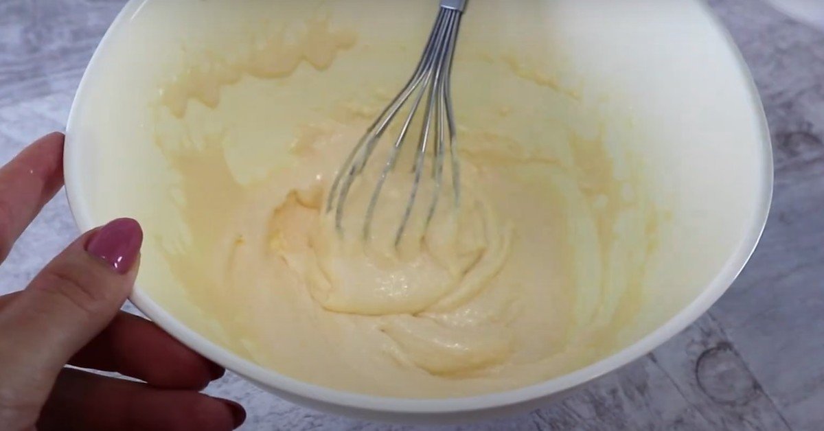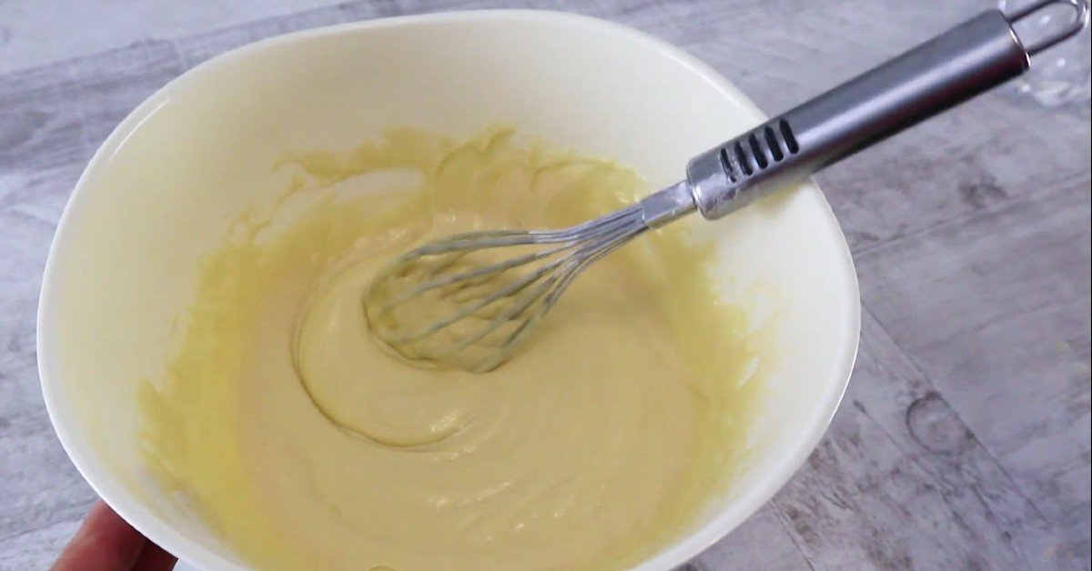 Rozpuść masło (na kuchence bądź w mikrofalówce) i po ostygnięciu dodaj połowę do ubitych wcześniej żółtek z cukrem. Delikatnie wymieszaj, a następnie dolej do masy mleko i ponownie delikatnie pomieszaj.