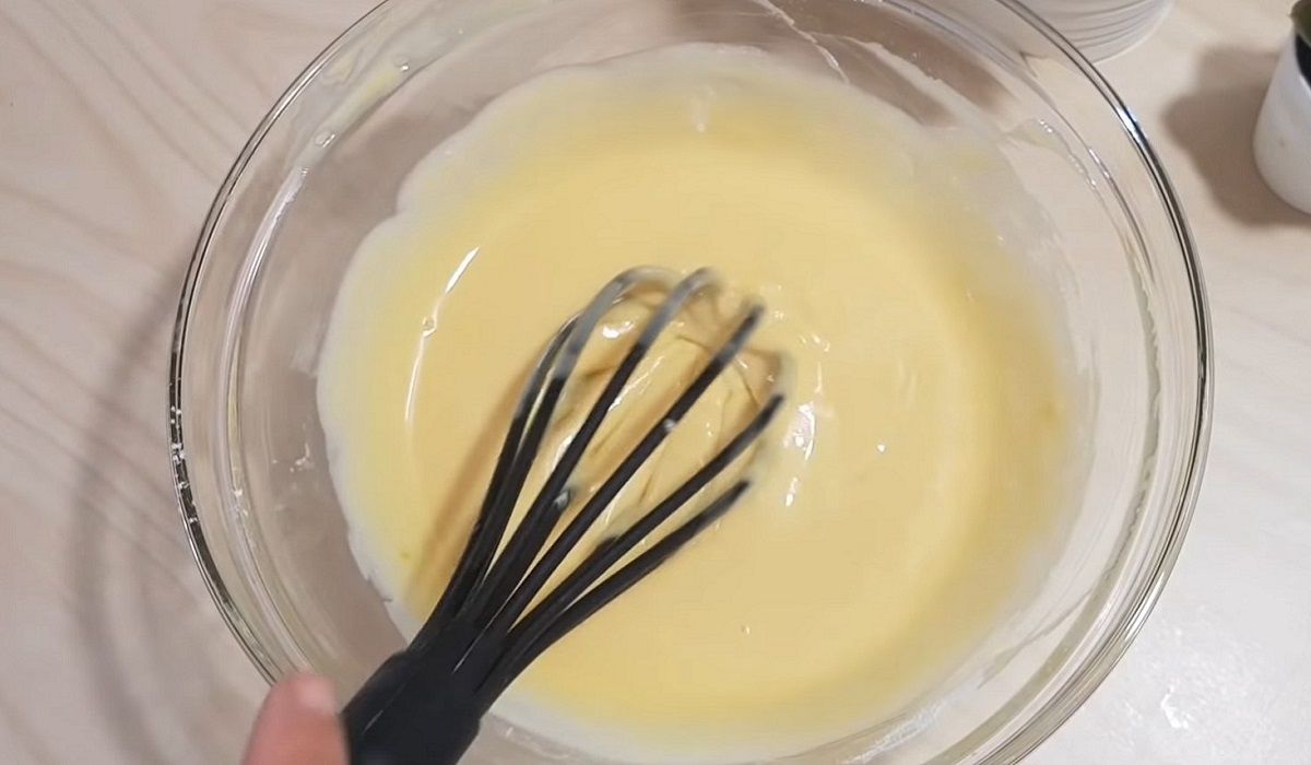 Wymieszaj mleko z mąką. Wmieszaj olej, a następnie dodaj go do masy.