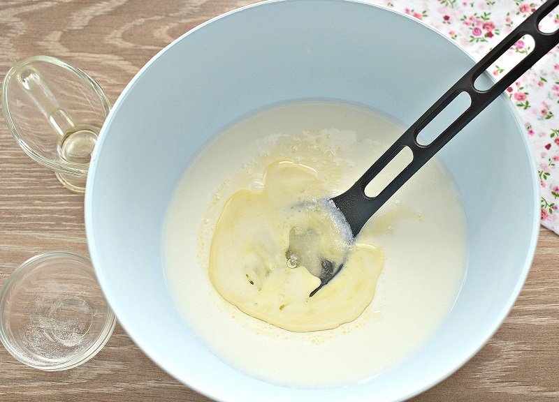 1.Do miski wlej wodę, po czym dodaj do niej kefir, który ma temperaturę pokojową.