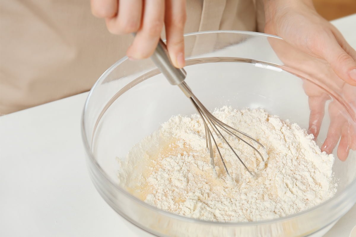 2. Jeśli chodzi o mąkę, to taki chleb można również przygotować w całości z mąki pszennej. Stopniowo dodawaj mąkę do kefiru.