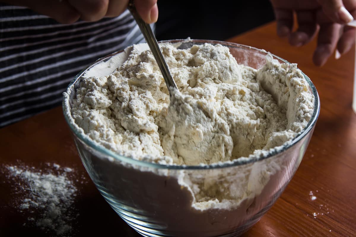 3. Zagnieć ciasto łyżką. Powinno być dość luźne, ale trzymać się dłoni. Najważniejsze, aby było jednolite i gładkie.