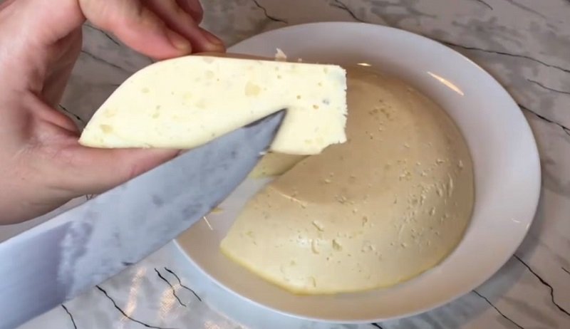 5. Ser smażony jest gotowy, kiedy całkowicie się rozpuści. Przelej go do miseczki, przykryj folią spożywczą i odstaw w chłodne miejsce do całkowitego wystudzenia.