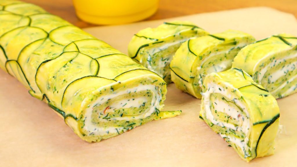 2. Potem weź drugą cukinię i pokrój ją w cienkie plastry. W dalszej części wyłóż blachę papierem do pieczenia i wylej na nią mieszankę cukiniowo – jajeczną.