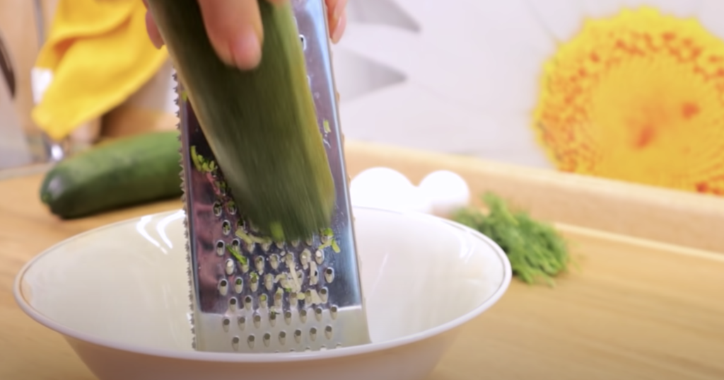 1. W pierwszej kolejności umyj obie cukinie. Następnie jedną z nich zetrzyj na tarce o drobnych oczkach. W misce ubij jajka trzepaczką lub mikserem i dodaj do nich startą cukinię. Dopraw solą i pieprzem do smaku i dokładnie wymieszaj.