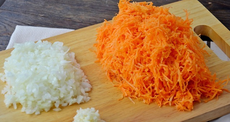 1.Dokładnie obierz oraz umyj wszystkie warzywa. Na małą kostkę pokrój cebulę, a za pomocą tarki zetrzyj całe marchewki.