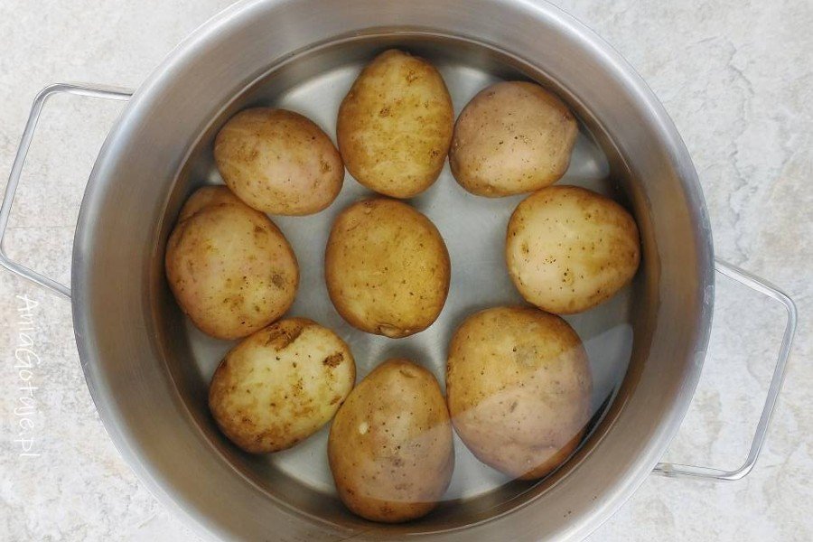1. Umyj ziemniaki w mundurkach o średniej wielkości i ugotuj w wodzie z łyżeczką soli do miękkości.