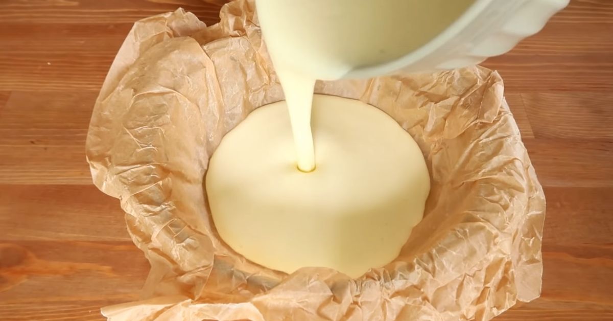2. Całość bardzo dokładnie wymieszaj ze sobą .Przygotuj okrągłą formę, następnie wyłóż ją papierem do pieczenia. Następnie przelej całe otrzymane ciasto. Piecz w rozgrzanym piekarniku do 170 stopni przez 30-35 minut.