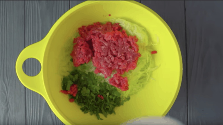 2. Po tym czasie odsącz cebulę i kapustę z wody. Do miski dodaj mięso mielone i posikaną pietruszkę .