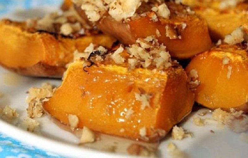 Przed podaniem, pozwól jej wystygnąć i posyp prażonymi orzechami włoskimi, orzechami nerkowca lub migdałami. Możesz również dodać trochę miodu, wtedy dynia będzie nieco słodsza. Smacznego!