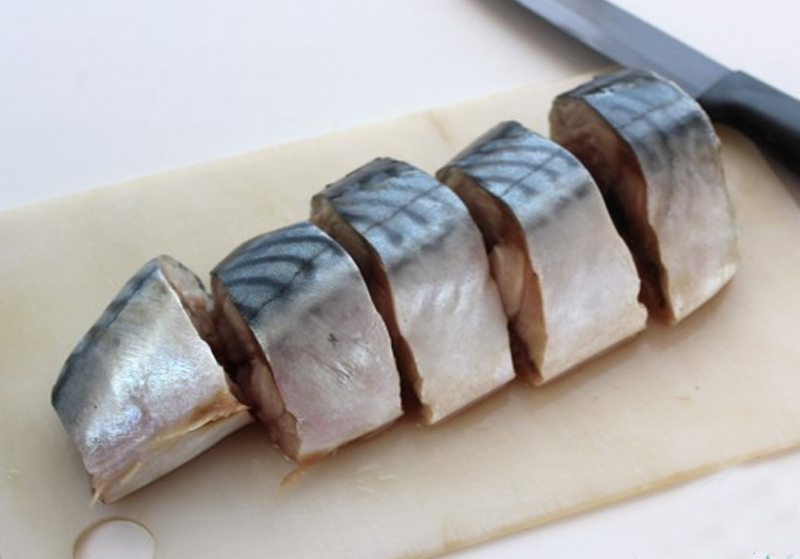 1. Wypatrosz rybę, odetnij głowę, ogon i dobrze umyj pod bieżącą wodą. Odsącz wodę ręcznikiem papierowym i pokrój na dzwonki.