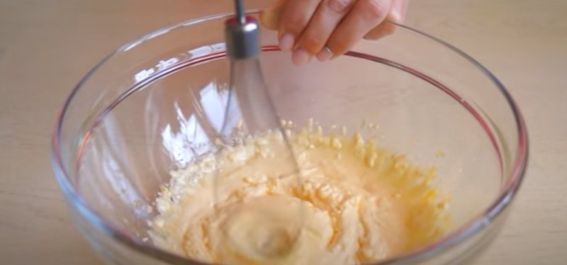 1. W wygodnym pojemniku, ubij żółtka z cukrem, roztopionym masłem, mlekiem, solą oraz cukrem waniliowym. Następnie, dodaj przesianą mąkę z proszkiem do pieczenia i dokładnie wymieszaj.