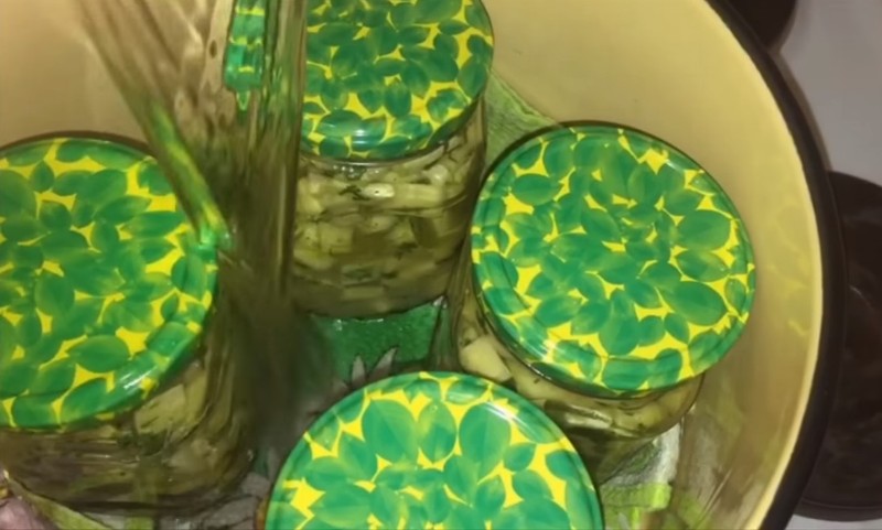 3. Po tym czasie, przełóż cukinię do sterylnych, szklanych słoików, zalej sokiem, który puściła i przykryj nakrętkami. Szczelnie zakręcone słoiki, włóż do garnka z wodą i zabezpiecz przestrzenie między słoikami, czystą ściereczką.