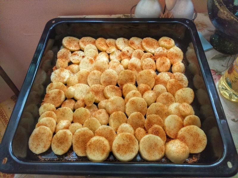 Rozpocznij przygotowania od zrobienia marynaty z oleju, piwa, miodu oraz przypraw. Następnie posmaruj nią przygotowane uprzednio ziemniaki w plastrach i rozłóż je na blasze do pieczenia. Pozostałą część marynaty wykorzystaj z kolei do zamarynowania mięsa.