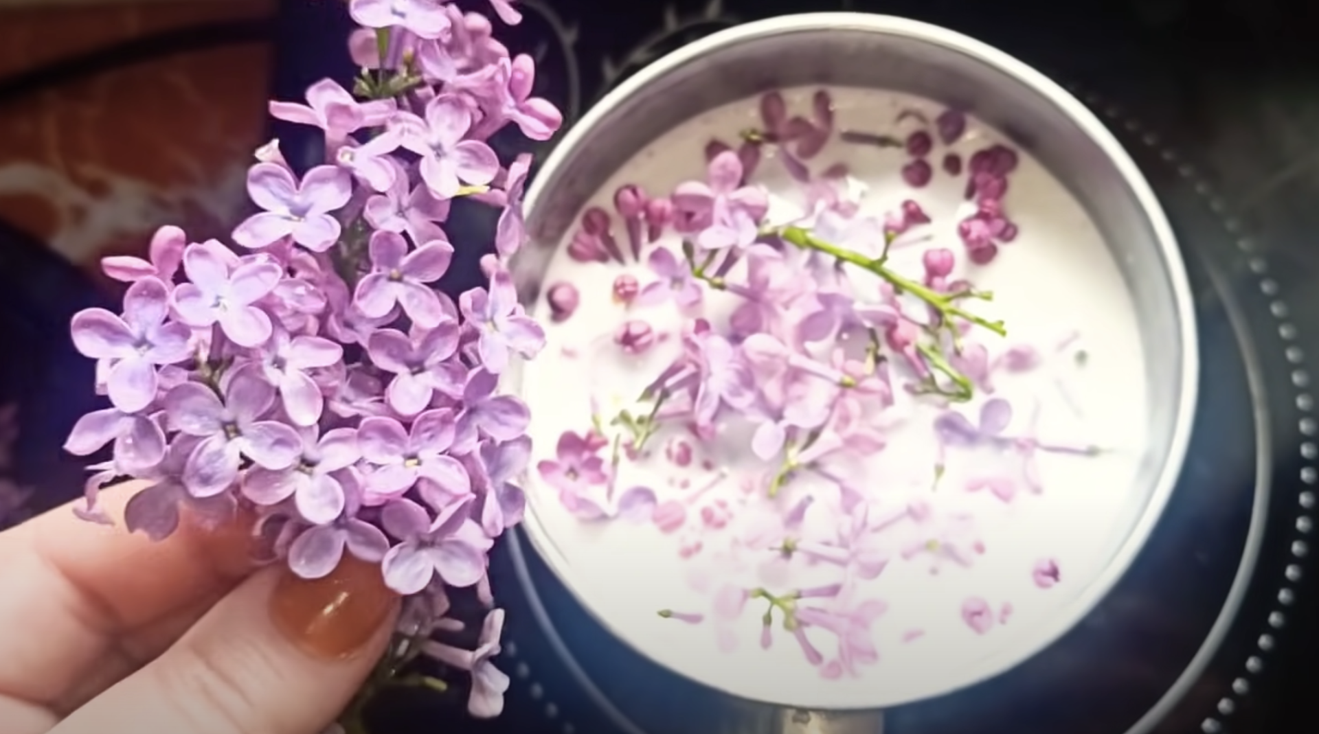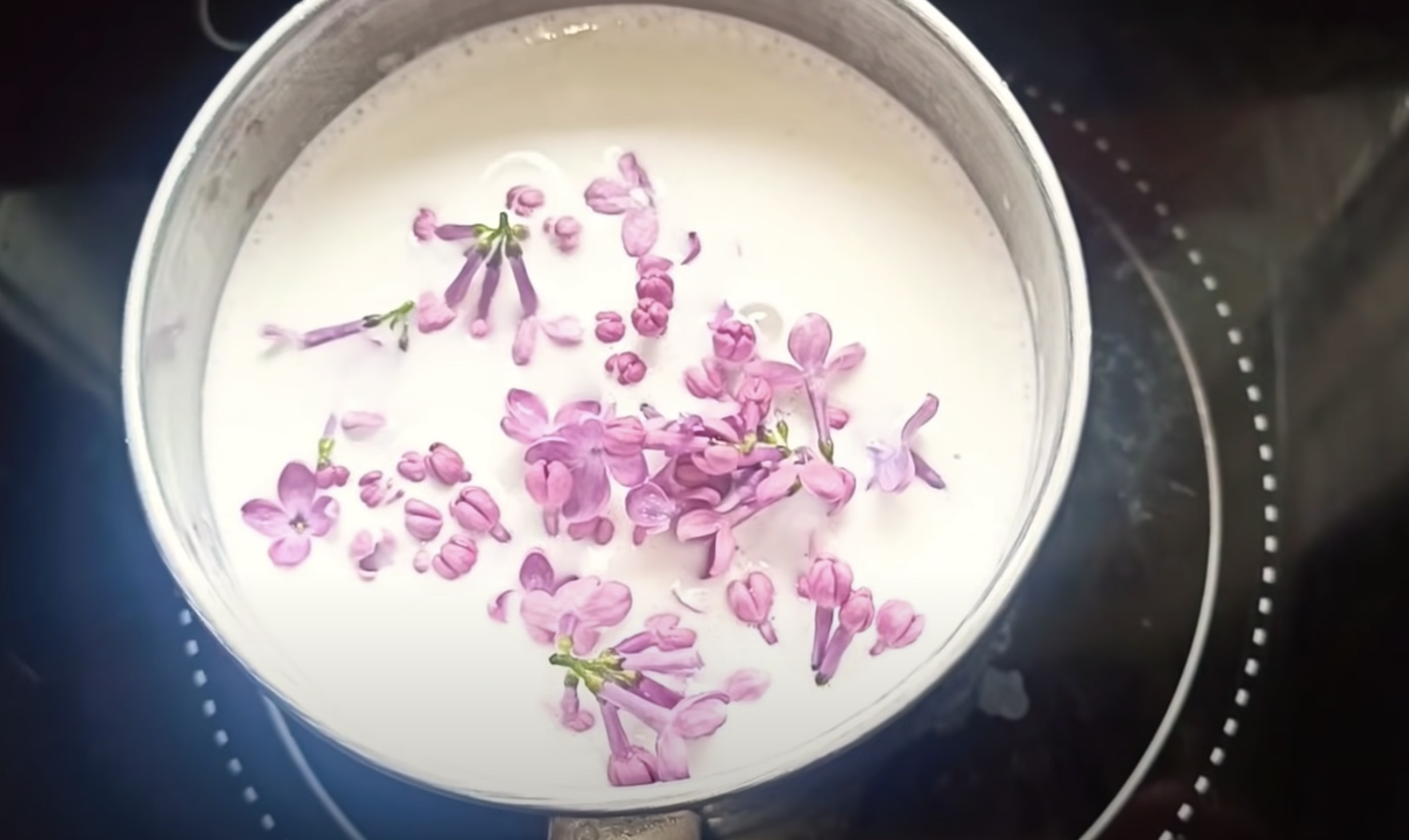 zacznij od kwiatów bzu. Umieść je w garnku i zalej wybranym mlekiem roślinnym, najlepiej migdałowym lub owsianym.