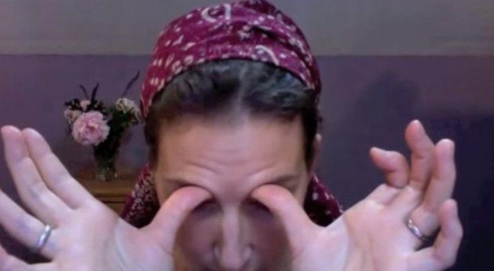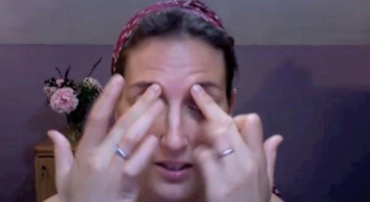 Ręce możesz ustabilizować opierając łokcie o stół lub o kolana. Kiedy poczujesz zmianę ciśnienia, przesuń palce bliżej środka brwi i znów odczekaj chwilę do momentu, aż poczujesz kolejną zmianę.