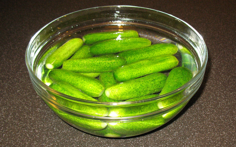 1. Umyj dokładnie pod bieżącą wodą ogórki, odetnij końcówki, a jeśli są duże, przekrój je wzdłuż na ćwiartki.