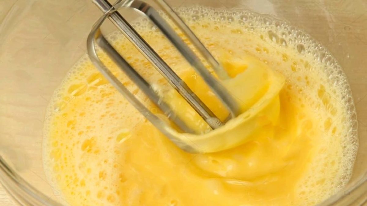 2. Za pomocą miksera ubij jajka na wysokich obrotach. Fileta ugotowanego oraz roztopione masło zmiel za pomocą blendera.