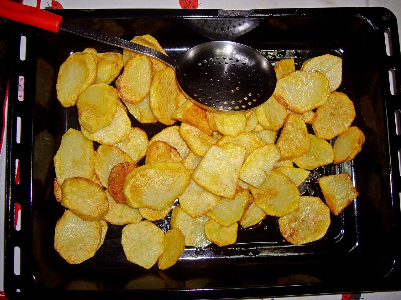 Gdy gotują się ziemniaki, mała ilość oleju wlej na blachę, następnie do nagrzanego piekarnika włóż na minut. Dzięki temu ziemniaki nie będą tłuste, gdyż nie wchłoną zimnego tłuszczu.