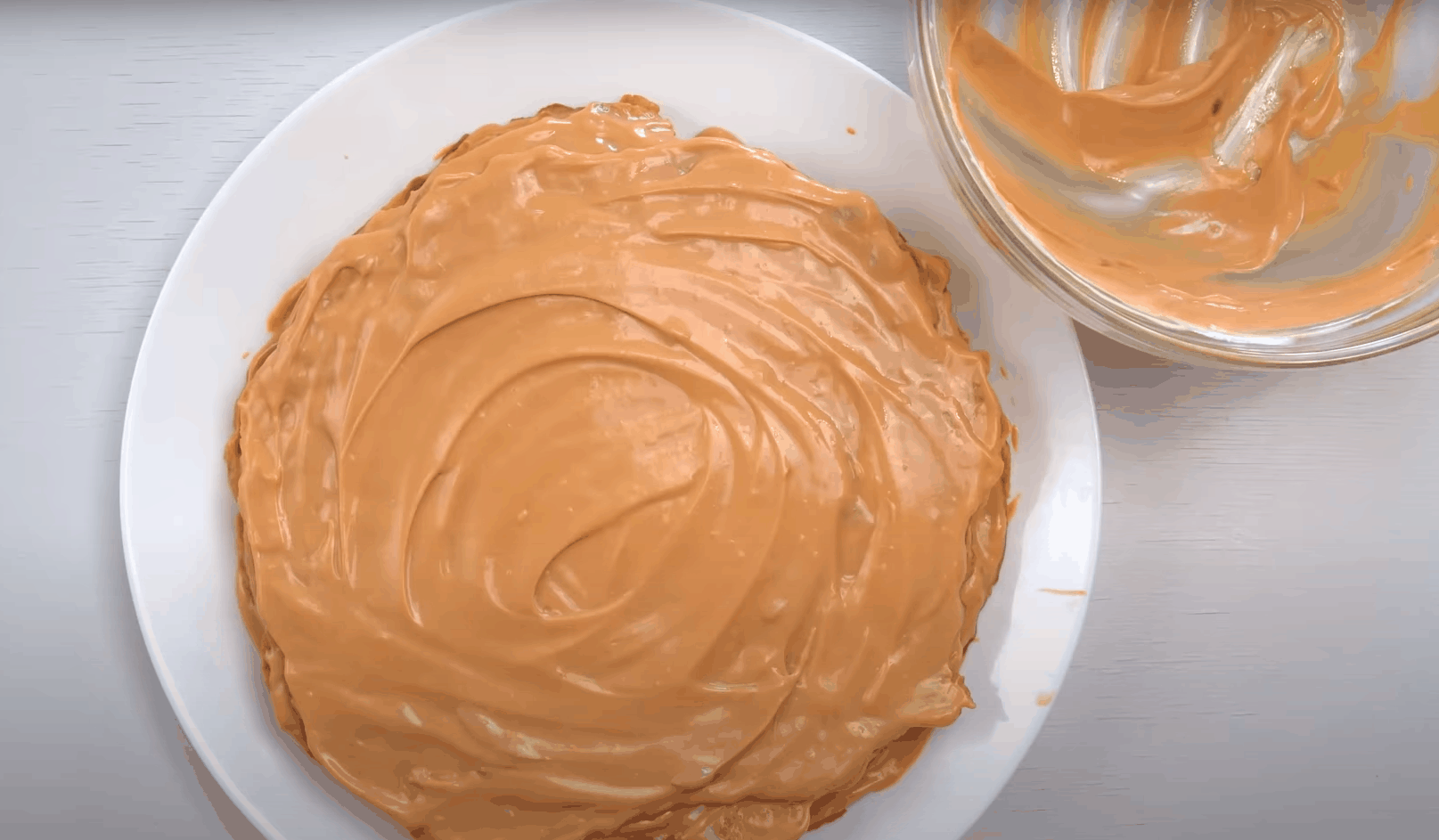 Kolejno przyrządź krem. Śmietanę wymieszaj z mlekiem skondensowanym. Tak przygotowany krem układaj na przemian na uprzednio usmażonych plackach. Ostatnią z warstw będzie śmietanka. Deser należy umieścić w lodówce na kilka godzin. Następnie można udekorować go ulubionymi owocami lub polewą czekoladową.