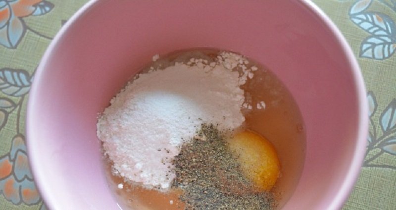 3. W osobnej misce wymieszaj mąkę z jajkiem i białkiem, dopraw do smaku solą i pieprzem.