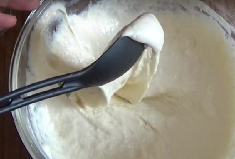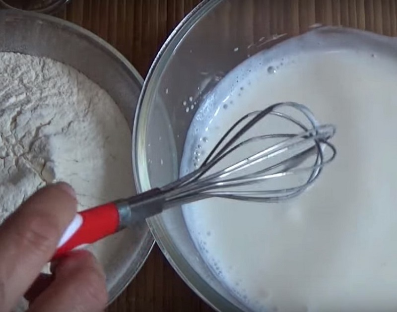1.Do miski wlej ciepły kefir dodaj sól oraz sodę. Następnie dodaj cukier, mąkę i mieszaj aż konsystencja będzie jednolita.