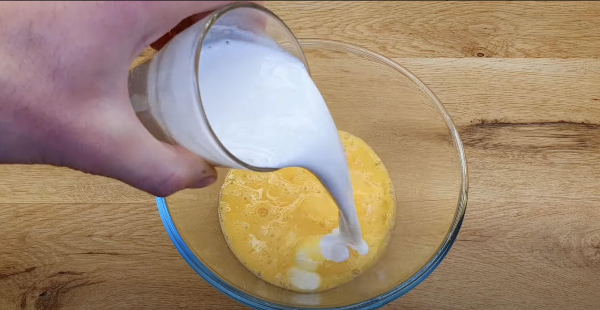 4.Do wbitych jajek dodaj śmietanę oraz przyprawy.