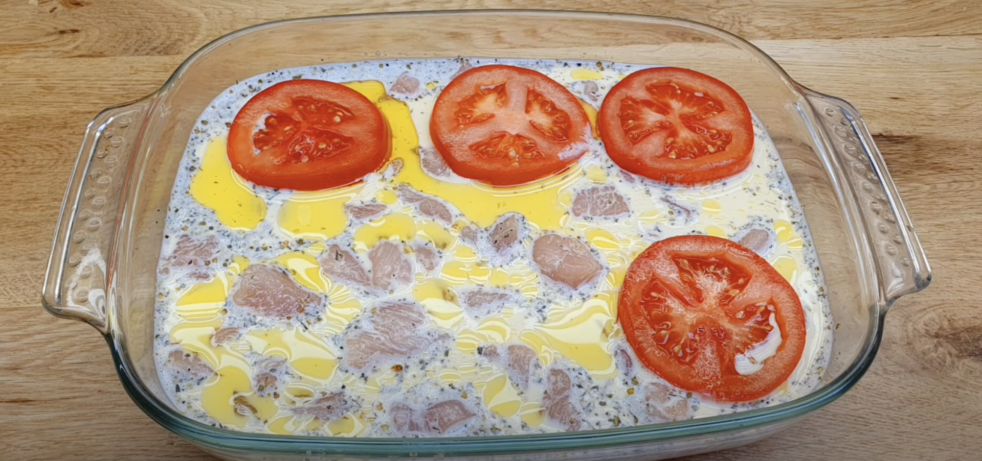 3.Posmaruj tłuszczem naczynie żaroodporne i włóż do niego przyprawione mięso. Do miski wbij dwa jajka.