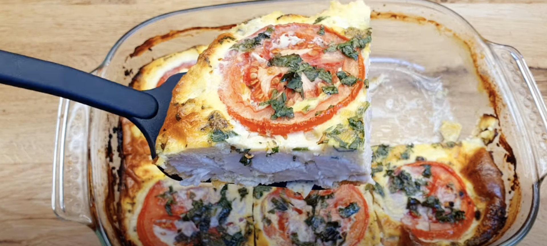 6.Na górę układaj pokrojone w plasterki pomidory. Całość posyp natką pietruszki, następnie do rozgrzanego piekarnika wstaw przygotowane danie. Piecz przez 20 minut w 200 stopniach.