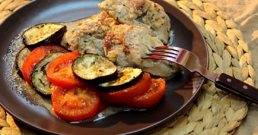Potem naprzemiennie nabijaj kawałki mięsa z bakłażanem na drewniane patyczki. Dopraw do smaku ulubionymi przyprawami, zawiń w folię aluminiową i tak przygotowane szaszłyki upiecz do miękkości w piekarniku.