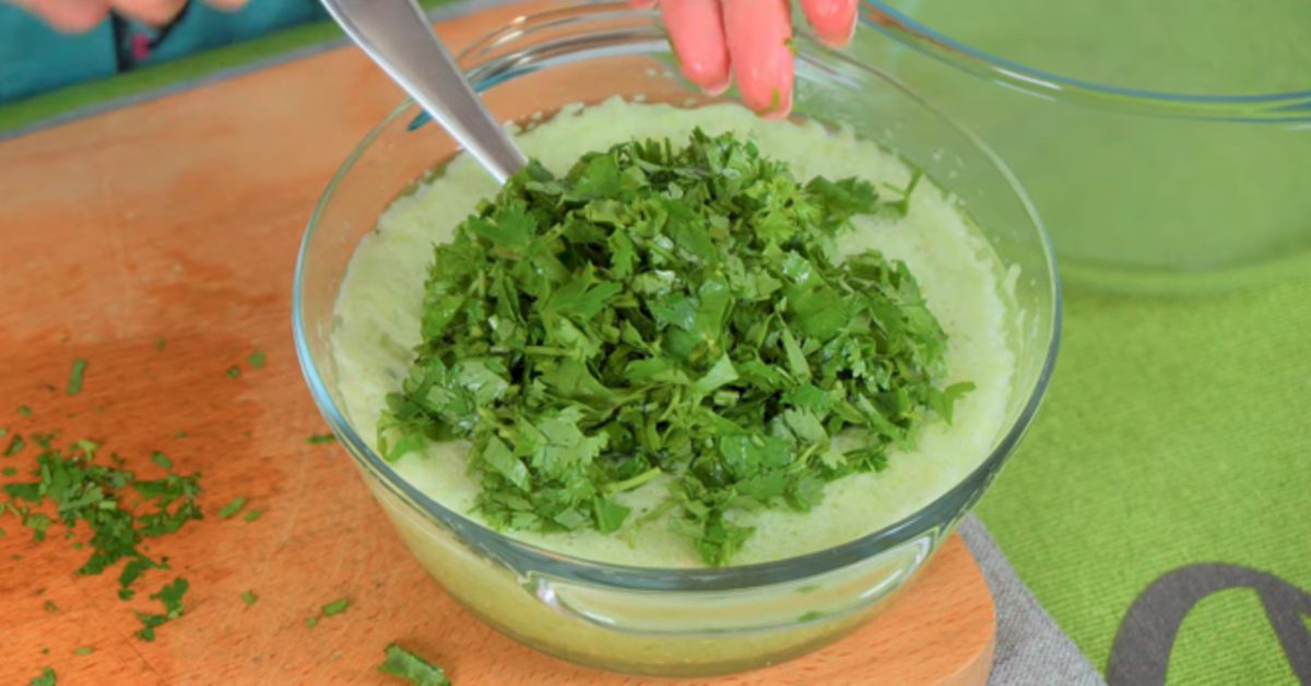 3. Do przygotowanej mieszanki włóż pokrojone na mniejsze kawałki świeże zioła , całość ponownie wymieszaj.