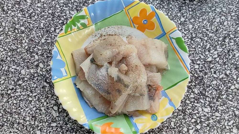 3.W misce wymieszaj pokrojonego na mniejsze kawałki fileta z solą oraz pieprzem. Tak przygotowaną rybę smaż wraz z warzywami, do momentu, aż będą one miękkie.