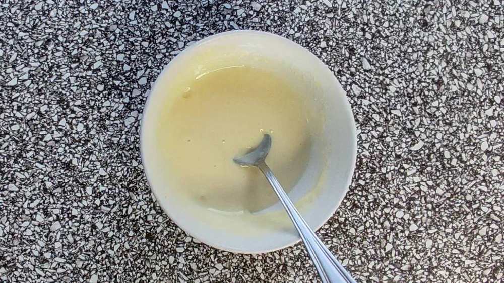 4. Do małej miseczki wlej jogurt grecki, po czym dodaj do niego jajko, całość bardzo dokładnie połącz ze sobą.