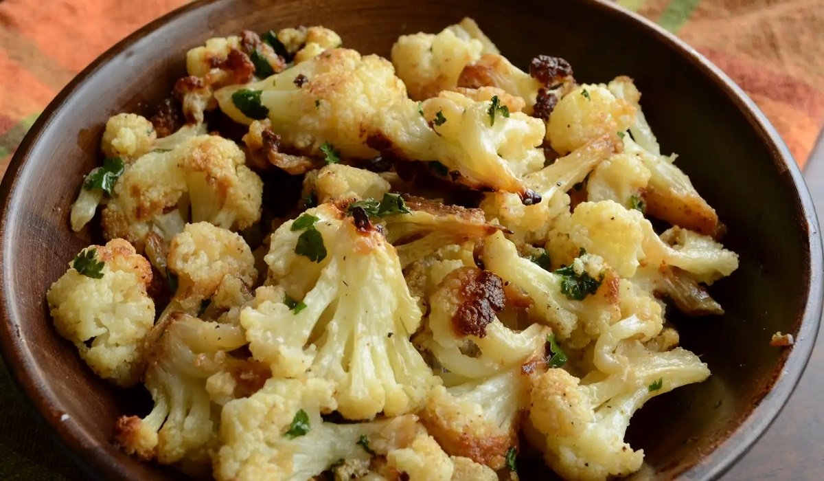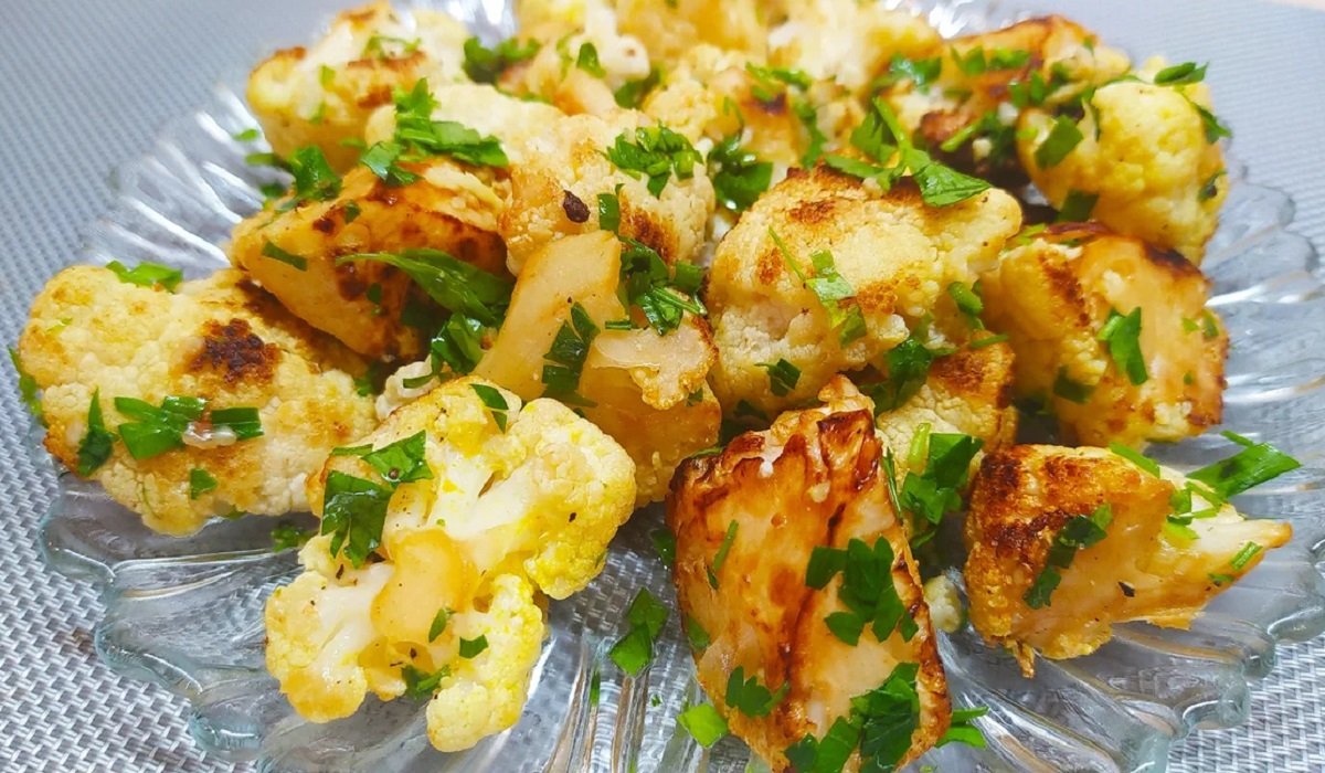 5. Dla lepszego smaku przypraw solą, pieprzem oraz drobno posiekanym czosnkiem i ulubionymi ziołami. Tak przygotowany kalafior włóż do lodówki na około 1 godzinę. Po tym czasie rozpływaj się nad wspaniałym smakiem pysznego chrupiącego kalafiora.