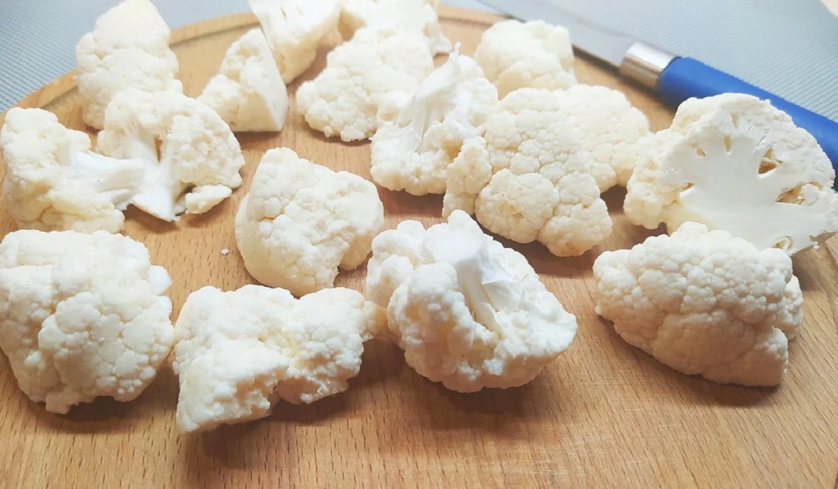 1. Na samym początku dokładnie umyj kalafior, po czym pokrój go na różyczki. Jeśli są duże , koniecznie podziel je na połowę.