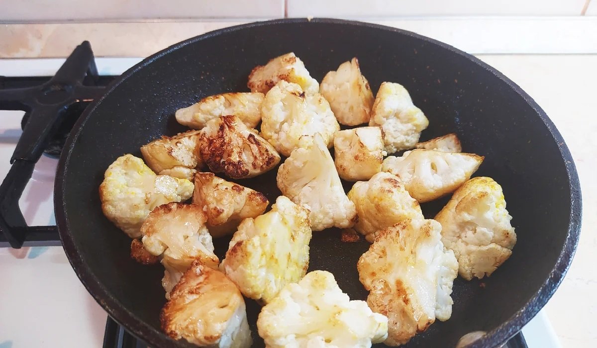 4. Po kilku minutach wyłóż kalafiora na ręcznik papierowy i dokładnie go osusz, następnie rozgrzej olej na patelni i podsmażaj go na złoty kolor.