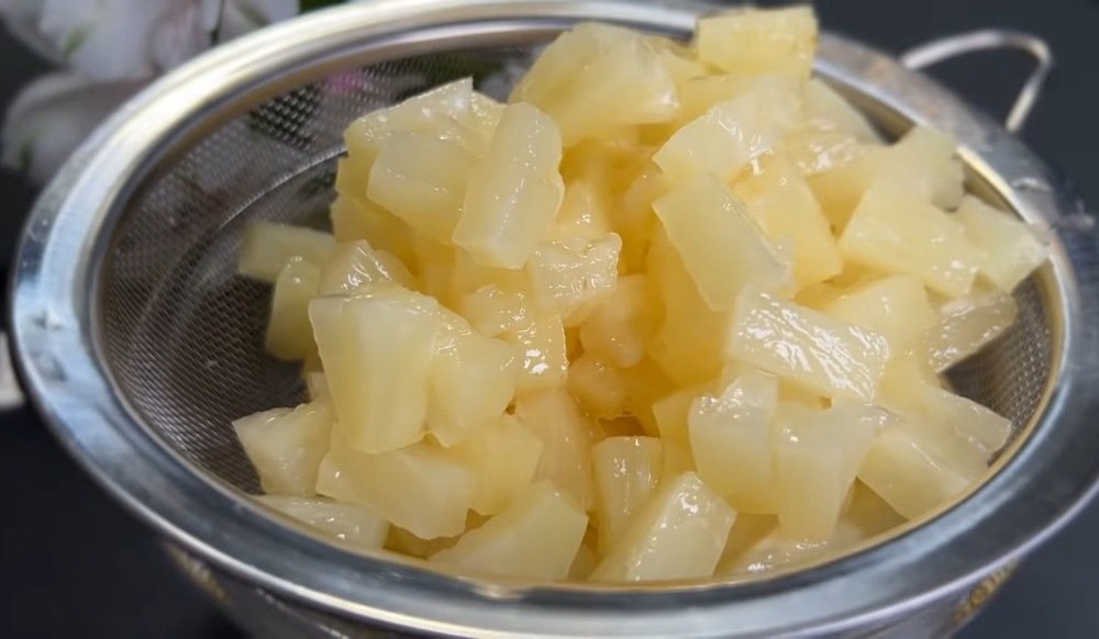 • Puszka ananasa . Ewentualnie możesz dodać puszkę brzoskwiń