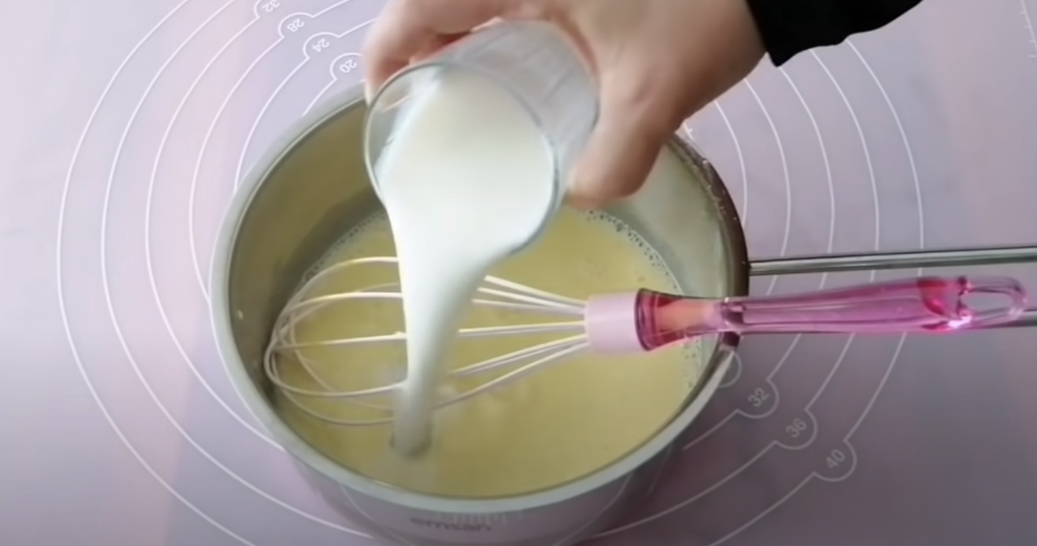 1. Przygotowywanie zacznij od nadzienia. W szklance z odrobiną mleka wymieszaj cukier, jajko oraz mąkę. Resztę mleka gotuj w garnku, po czym wlej przygotowaną mieszankę.