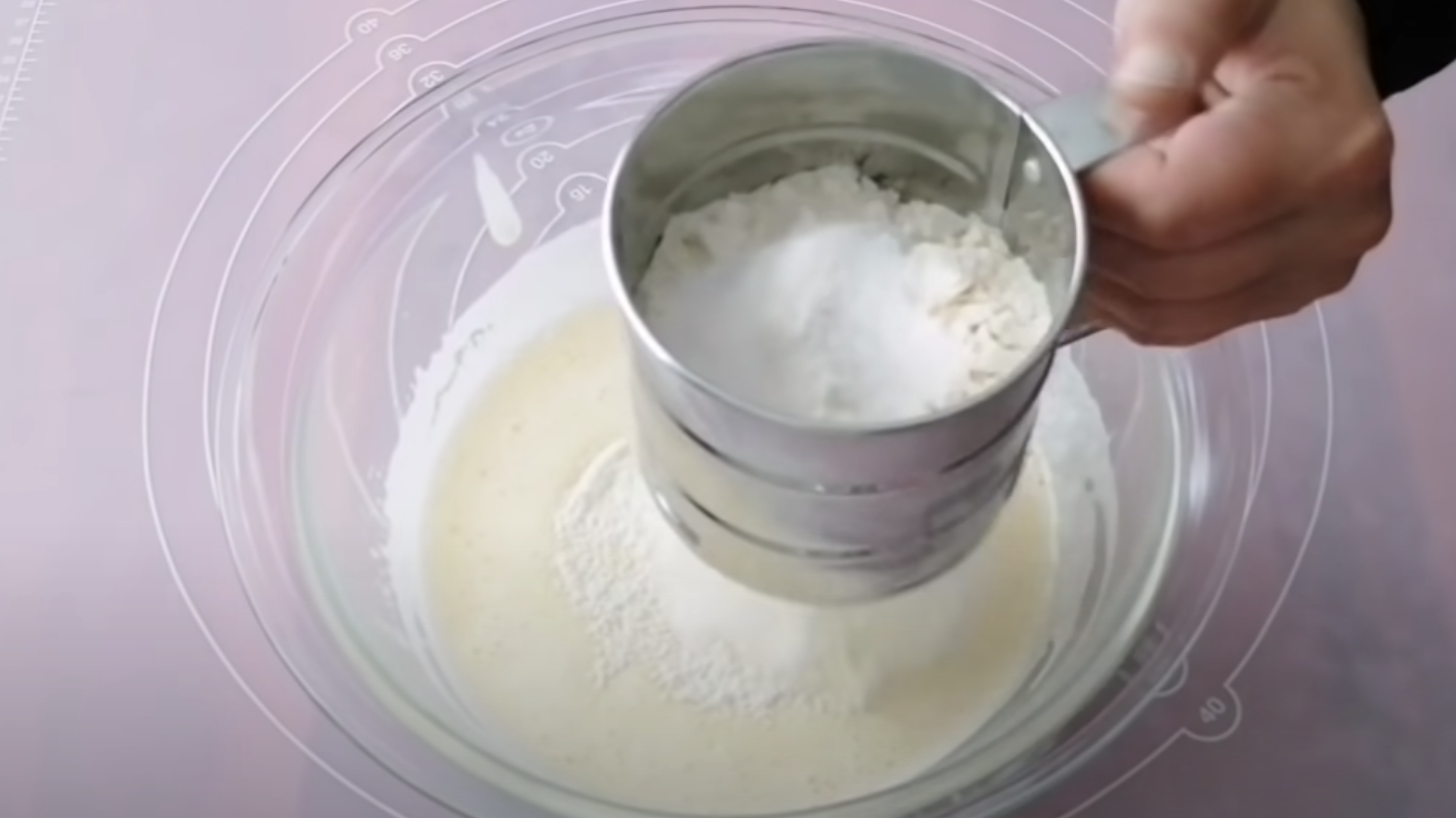 3. Do miski wlej mleko, następnie dodaj cukier oraz 2 jajka. Całość dokładnie wymieszaj, po czym stopniowo dodawaj proszek do pieczenia oraz mąkę.